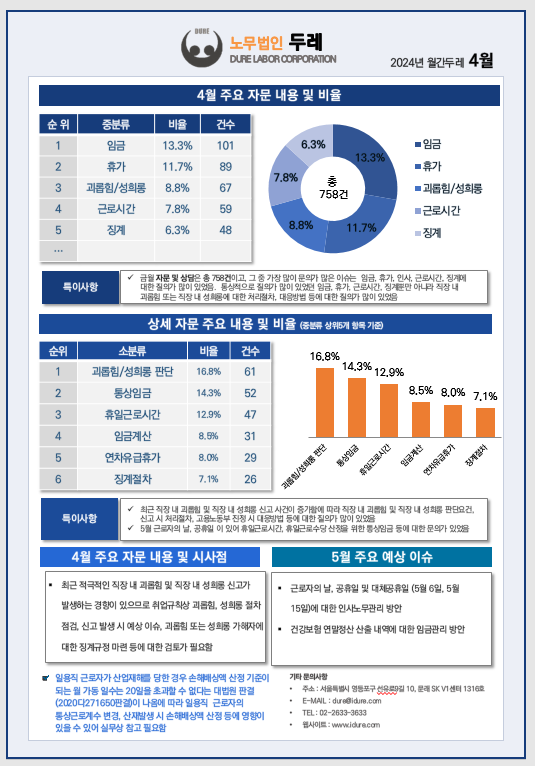 2024년 4월 노무법인 두레 자문현황 및 주요 이슈사항