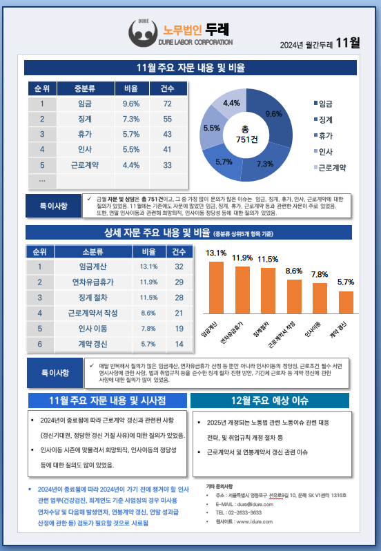 2024년 11월 노무법인 두레 자문현황 및 주요 이슈사항