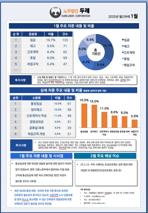 2025년 1월 노무법인 두레 자문현황 및 주요 이슈사항
