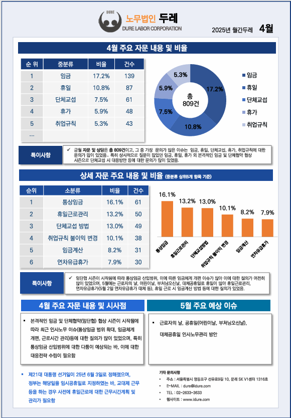 2025년 4월 노무법인 두레 자문현황 및 주요 이슈사항