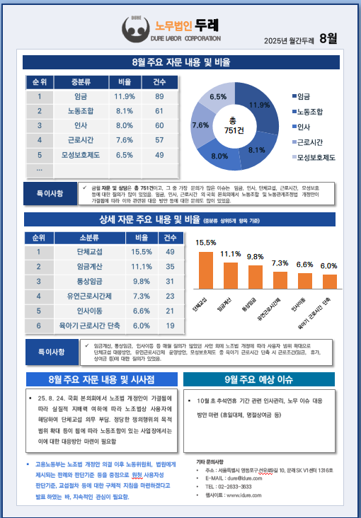 2025년 8월 자문현황 및 주요 예상이슈